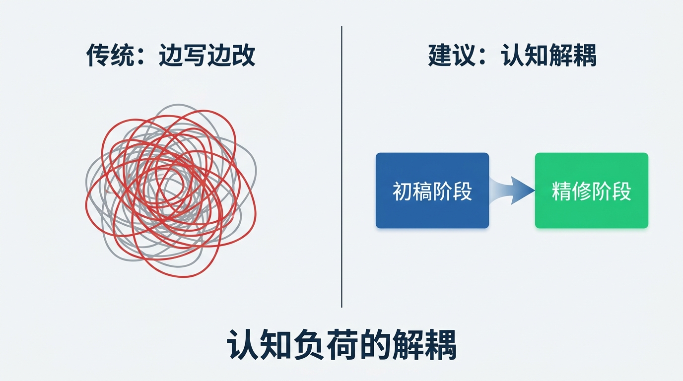 一、 认知负荷理论:为什么“边写边改”是效率的敌人?