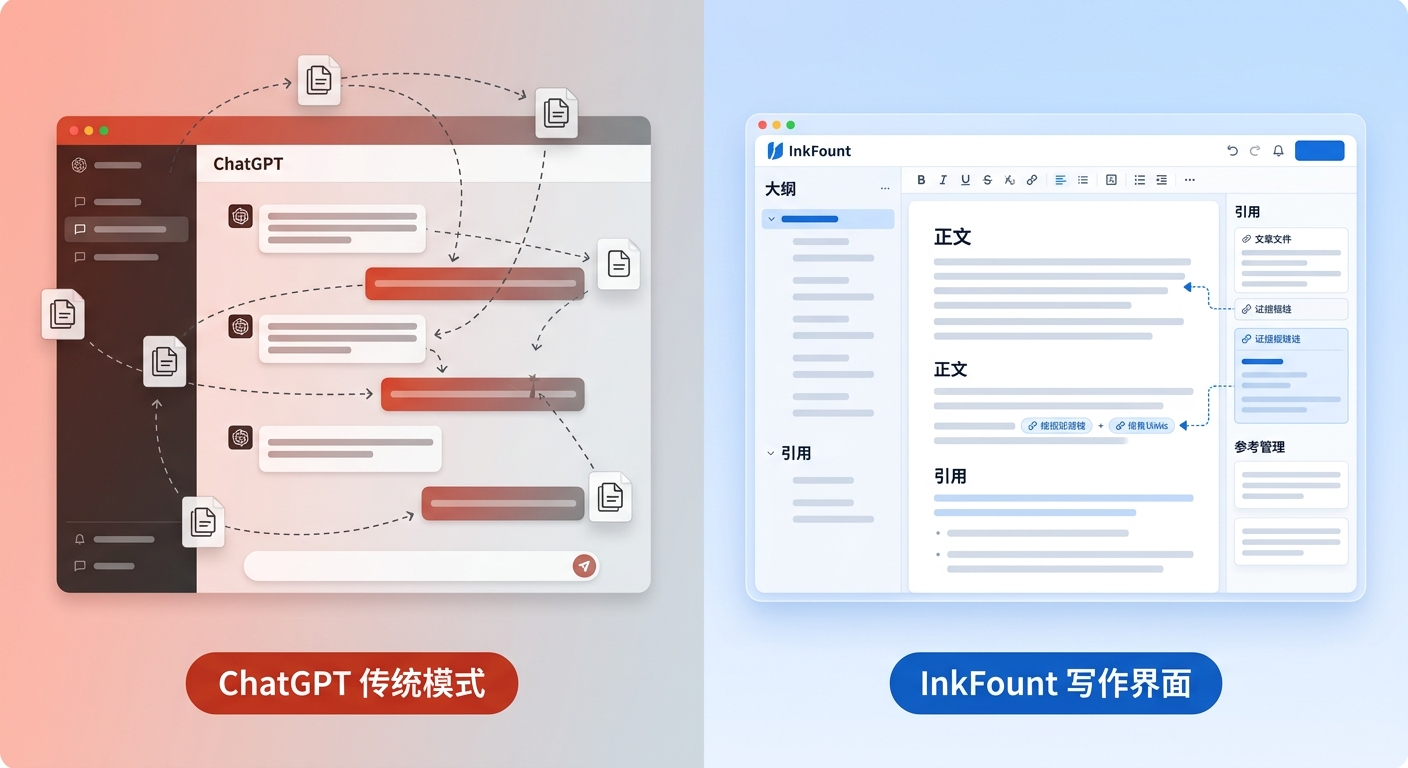 绝大多数用户最初接触 AI 写作都是从 ChatGPT 开始的。不可否认,其作为通用对话工具在灵感激发上具有爆发力,但在处理严肃的长文写作(Research-grade Writing)时,它正暴露出致命的“搬运损耗”。
