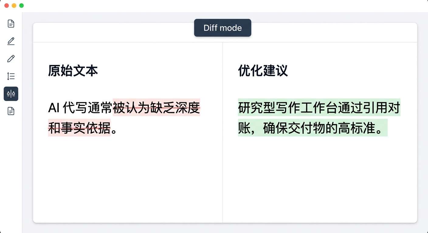 1. 为什么「逐词对比(Diff 模式)」是严肃写作的刚需?
