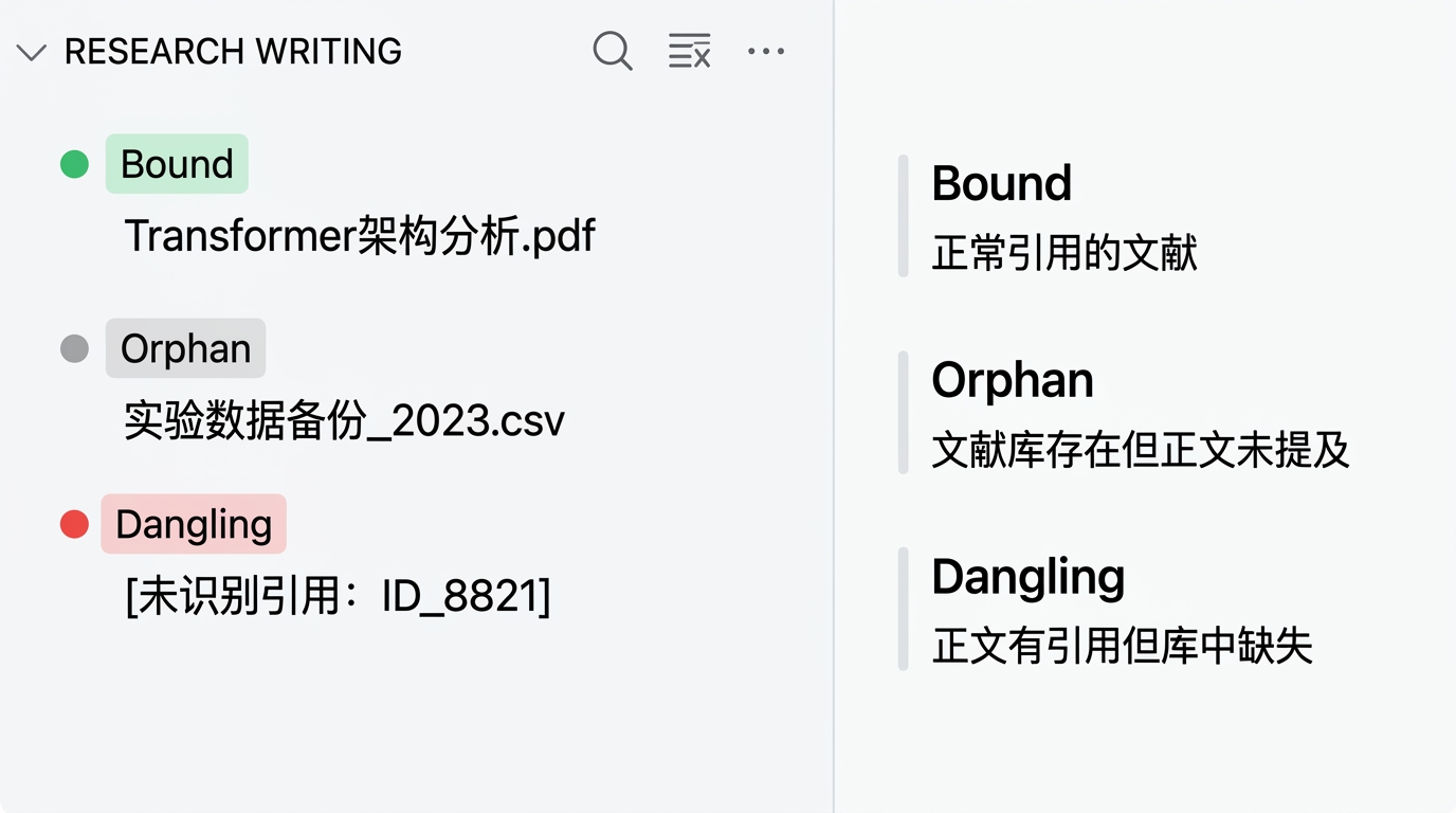 拒绝交稿前的引用地狱:详解研究型写作的 Bound / Orphan / Dangling 三态对账