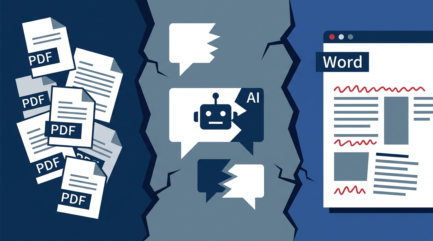 解析研究型写作中 AI 聊天的局限性。探讨 InkFount 如何通过原位改稿、参考文献对账及结构化交付,缝合 AI 写作中的“最后一公里”效率瓶颈。